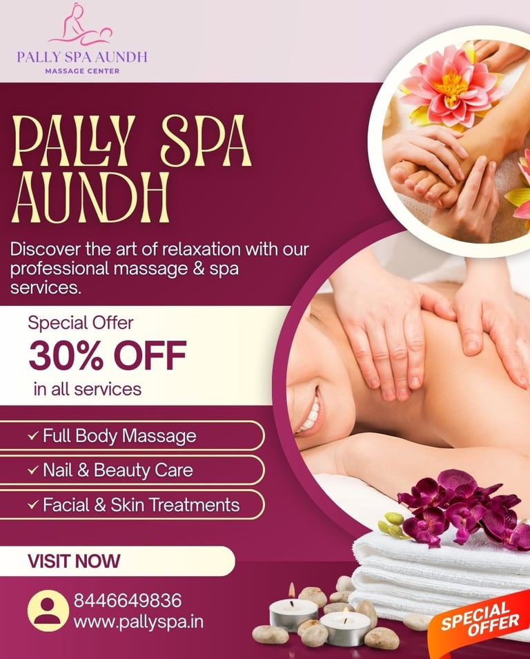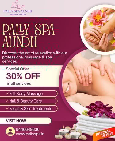 Pally Spa Aundh, established in 2019 by Pravin Gajanan Gaikwad, is a sanctuary of relaxation and rejuvenation located in the heart of Pune. Our spa is designed to provide a serene escape from the hustle and bustle of daily life, offering an array of luxurious treatments that promote holistic wellness and tranquility. With a team of skilled therapists and a commitment to using high-quality products, we ensure every visit is a journey of indulgence and renewal.